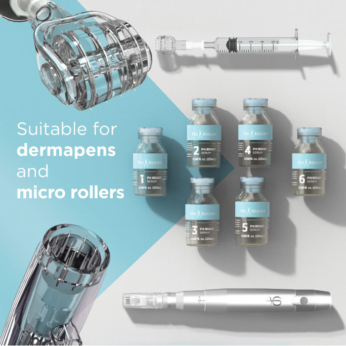PhiBright Microneedling PhiBright 是微針技術的升級版,可實現個性化治療,適應不同皮膚類型和條件的個人需求。 包含 15 種不同 PhiBright 精華素的調色板可以根據客戶的皮膚類型和狀態為每位客戶提供個性化的治療和個人方法。